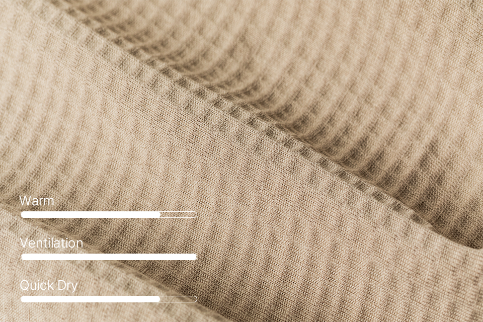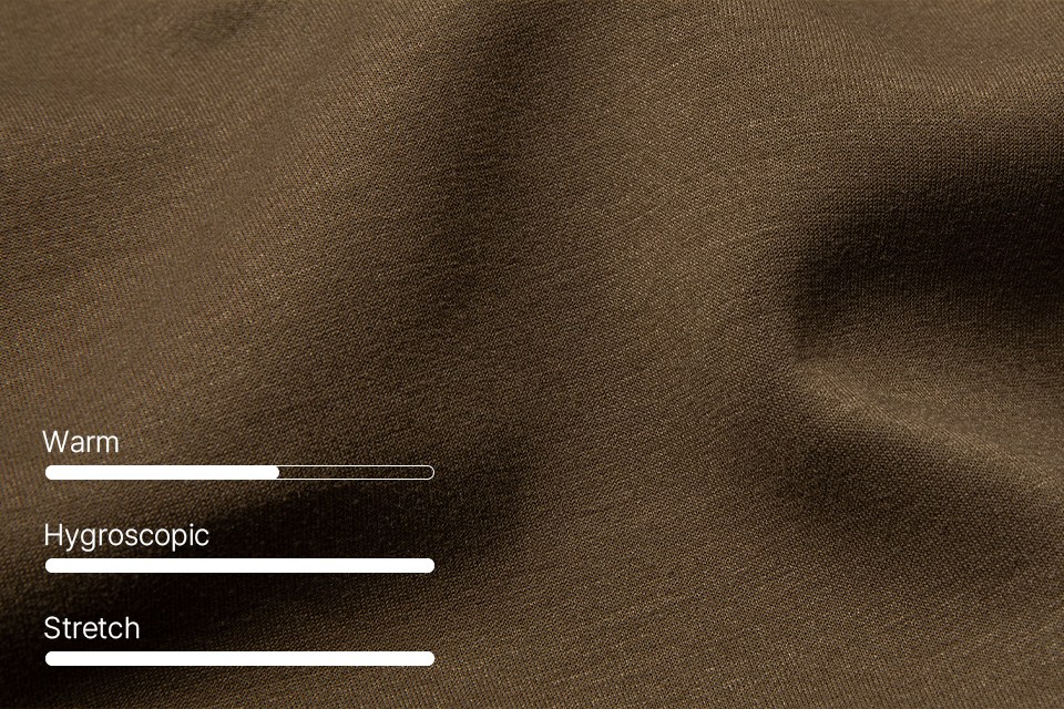 높은 스판사 함유량으로 탁월한 신축성을 제공하며, 기모 안감으로 보온성을 극대화한 소재